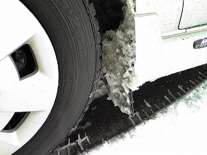 マッドガードに氷着しても、材質がゴム板なので簡単に払い落とせる。